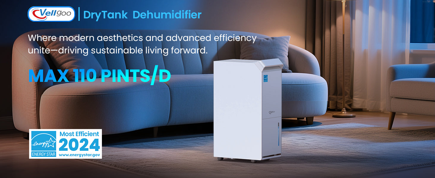 Vellgoo Max 110 Pints Energy Star Dehumidifier with Pump & Drain Hose(5,000 Sq.Ft) for Home
